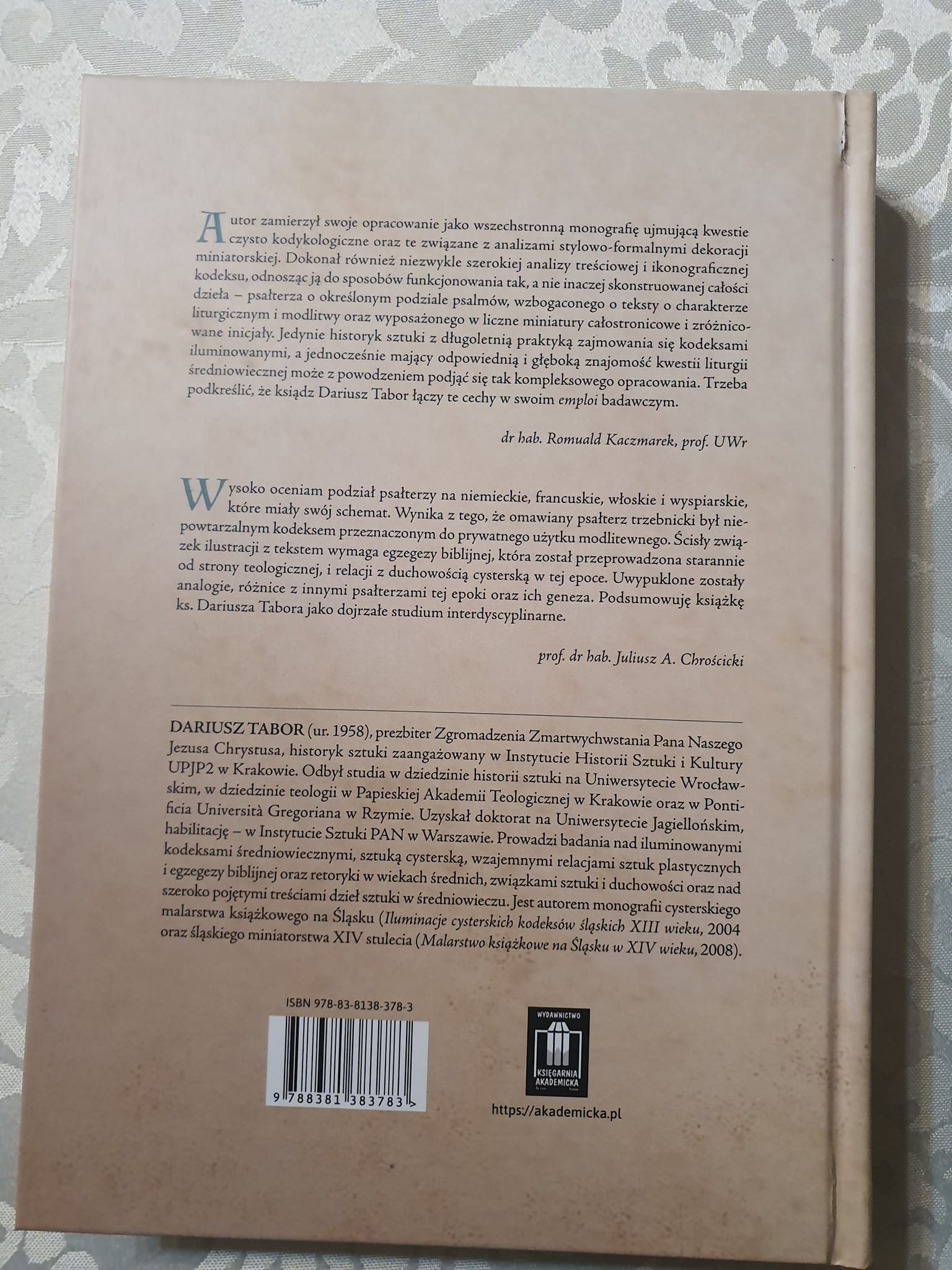 Dzisiaj nakładem wydawnictwa „Księgarnia Akademicka” ukazała się książka ks. dr. hab. Dariusza Tabora CR, prof. UPJP II, pod tytułem: „Beatus vir: Chrystologiczny Psałterz trzebnicki w Bibliotece Uniwersyteckiej we Wrocławiu wobec egzegezy biblijnej i duchowości cysterskiej XIII stulecia”. Jest to owoc wieloletnich badań naukowych Autora. Praca została wysoko oceniona przez recenzentów. Książka będzie podstawą do ubiegania się o tytuł profesorski. Ks. Dariuszowi składamy serdeczne gratulacje i życzymy dalszych sukcesów naukowych. Zachęcamy do lektury tej wybitnej monografii (dostępnej w księgarniach naukowych), która wprowadza w świat średniowiecznej duchowości i egzegezy.
