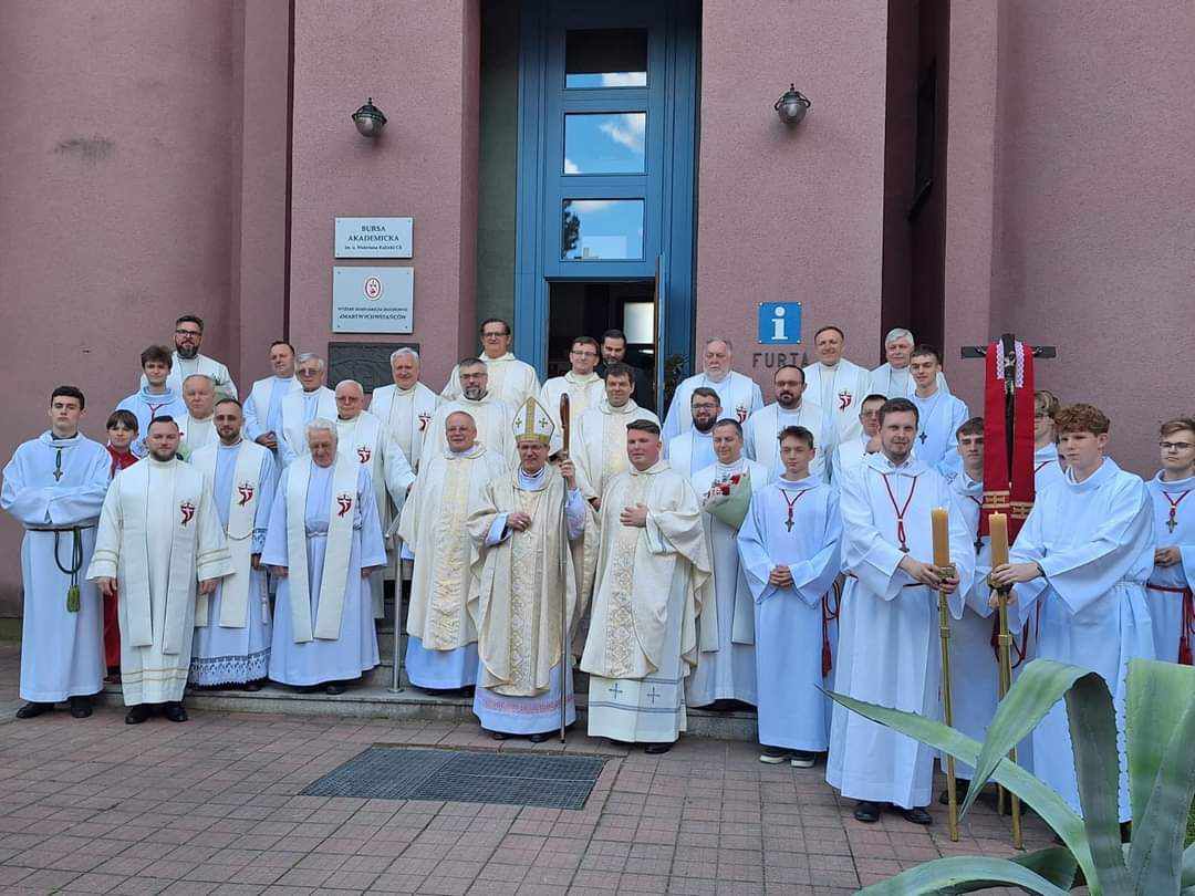 „Potrzeba nam kapłanów na wzór Serca Jezusowego”, nawiązał do słów św. Jana Vianney’a metropolita gdański w kazaniu podczas uroczystości święceń kapłańskich, których udzielił diakonowi Szymonowi Minkowskiemu CR w sobotę, 18 maja. W kontekście Ewangelii wg św. Mateusza arcybiskup Tadeusz Wojda SAC wskazał, iż kapłan winien być, jak Chrystus, światłością świata, a jego służba ma prowadzić do poprawy obyczajów wiernych. Przewodniczący Konferencji Episkopatu Polski, zaznaczył, że w dzisiejszych czasach nie jest to zadanie łatwe, zwłaszcza gdy krzyże zaczynają znikać z miejsc publicznych. Arcybiskup gdański życzył jednocześnie księdzu Szymonowi entuzjazmu w realizacji jego powołania, który winien wynikać z głębokiej, radosnej relacji z Chrystusem. Świadkami tych słów byli goście zgromadzeni w kościele seminaryjnym „Emaus”. Przybyli oczywiście z Krokowej i okolic, a więc miejsca pochodzenia księdza Szymona. Ponadto w uroczystości wzięli udział współbracia zmartwychwstańcy z różnych części kraju na czele z wikariuszem generalnym, ks. Robertem Rapińczukiem CR oraz prowincjałem, ks. Mariuszem Mazurem CR. W tej „radości Zgromadzenia”, jak określił to arcybiskup Wojda, wzięli też udział ceremoniarze i lektorzy z naszych parafii z Mszany Górnej, Krakowa, Bartnik i Poznania. Pełnili oni znakomicie służbę przy ołtarzu podczas tej niezwykłej uroczystości. Czy przyjęcie święceń przez ks. Szymona zainspiruje ich do kolejnych kroków? Jakich? Zobaczymy. Tymczasem świętowanie przeniosło się z kościoła do zakonnego refektarza w Centrum Resurrectionis, gdzie neoprezbiter przyjął życzenia oraz otrzymał od księdza Prowincjała dekret kierujący go do posługi w naszej parafii w Złocieńcu. Ad multos annos, ojcze Szymonie!