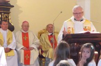 Mszę św. celebrowali biskup diecezji Hamilton na Bermudach – ks. bp Wiesław Śpiewak CR, biskup pomocniczy diecezji kaliskiej ks. bp Łukasz Mirosław Buzun oraz opat i primiceriusz Opactwa w Klosterneuburgu ks. Bernhard Backovsky. Podczas nabożeństwa nad kopią wizerunku Ikony Jasnogórskiej umieszczona została korona wykonana ze złota stanowiącego ofiarę wiernych i parafian kościoła. O oprawę muzyczną nabożeństwa zadbał Chór Archikatedry Katowickiej pod dyrekcją Krzysztofa Kagańca.